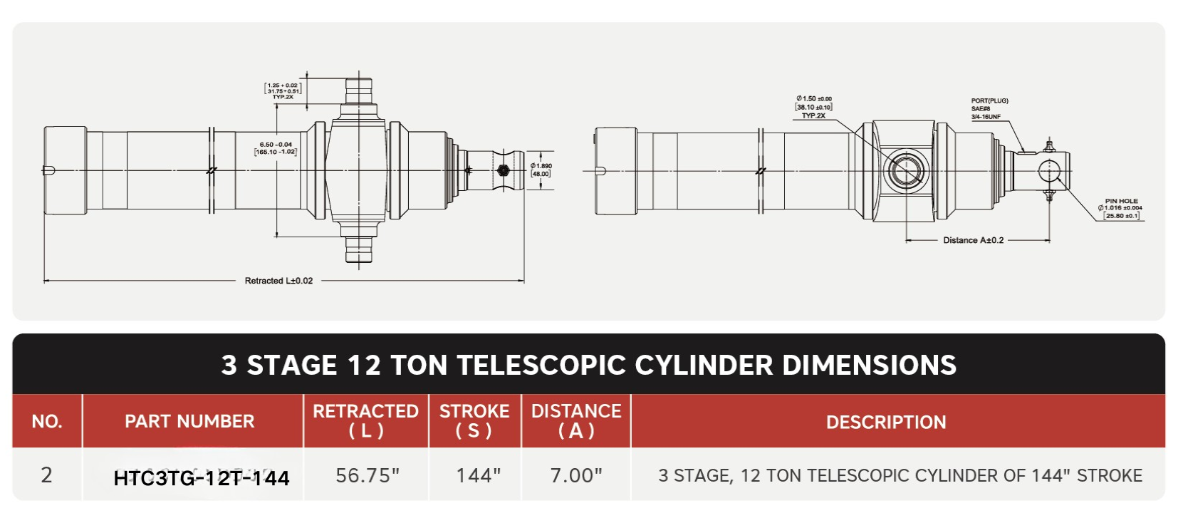 "HTC3TG-12T-144", 3 etapa, 12 tonako 144" trazako zilindro teleskopikoak